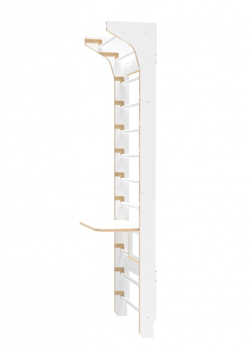 Oprócz kompatybilnego blatu, wartość dodaną drewnianej drabinki NUKI stanowi również możliwość regulacji jej rozmiaru, w zależności od potrzeb użytkowników oraz wysokości wnętrza. Swobodny demontaż drążków to otwartość na zapotrzebowania członków rodziny, tak aby każdy mógł skorzystać z FUNACTIVE w jak najlepszy dla niego sposób.