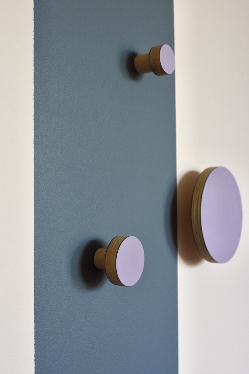 Kolorowy wieszak/uchwyt w kształcie koła od NUKI to elegancka i prosta forma połączona z polskim rzemiosłem. Warstwowa struktura brzozowej sklejki, dodaje mu naturalnego i ponadczasowego charakteru, sprawiając, że znajduje zastosowanie we wszelkich wnętrzach.